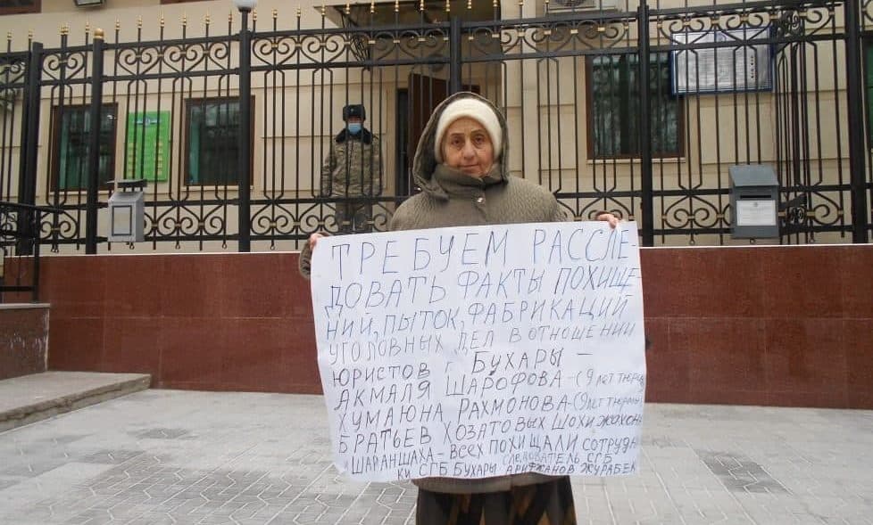 5 января правозащитницы Солмаз Ахмедова и Елена Урлаева пикетировали здание Службы государственной безопасности в Ташкенте. Они обвиняли сотрудников спецслужбы Бухарской области в пытках граждан.