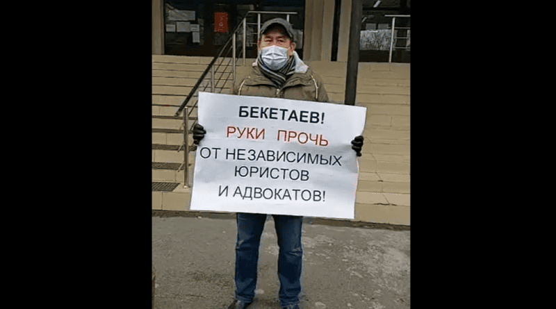 23 февраля юридический консультант Амангельды Шорманбаев провел одиночный пикет возле здания Департамента юстиции Алматы. Консультант вышел с плакатом, на котором было написано «Бекетаев! Руки прочь от независимых юристов и адвокатов Казахстана». Пикет был направлен против поправок в Закон «Об адвокатской деятельности и юридической помощи».
